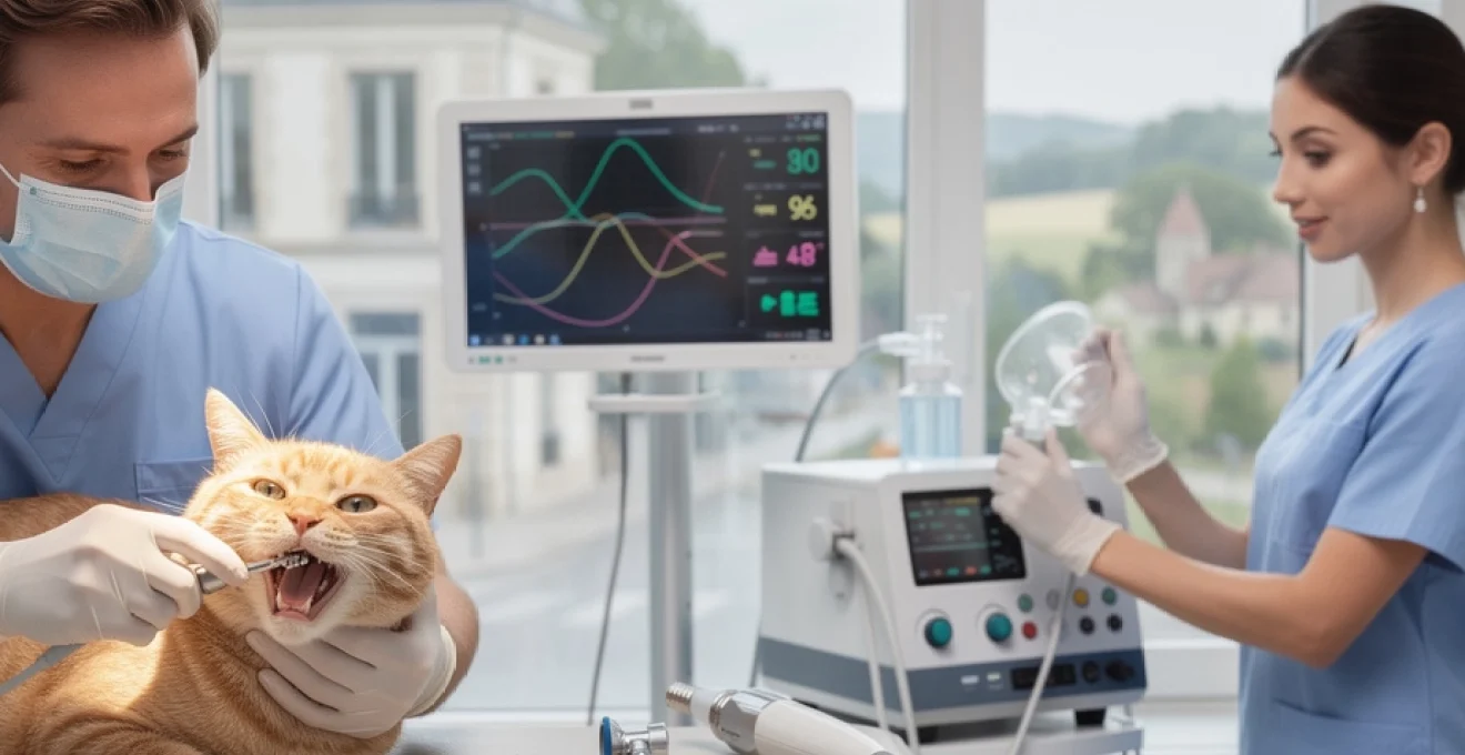 Dans certains cas, notamment en présence d’un souffle cardiaque ou de signes respiratoires, un électrocardiogramme (ECG) et parfois une échographie cardiaque sont recommandés. Ils permettent de dépister des troubles du rythme ou une cardiomyopathie hypertrophique, fréquente chez le chat et souvent silencieuse. Ces informations guident le choix des agents anesthésiques et des analgésiques, afin de réduire au maximum les risques per-opératoires. L’objectif n’est pas d’alourdir la facture sans raison, mais bien d’adapter un protocole « sur mesure » à votre compagnon, en particulier si l’on envisage un détartrage associé à des extractions multiples.