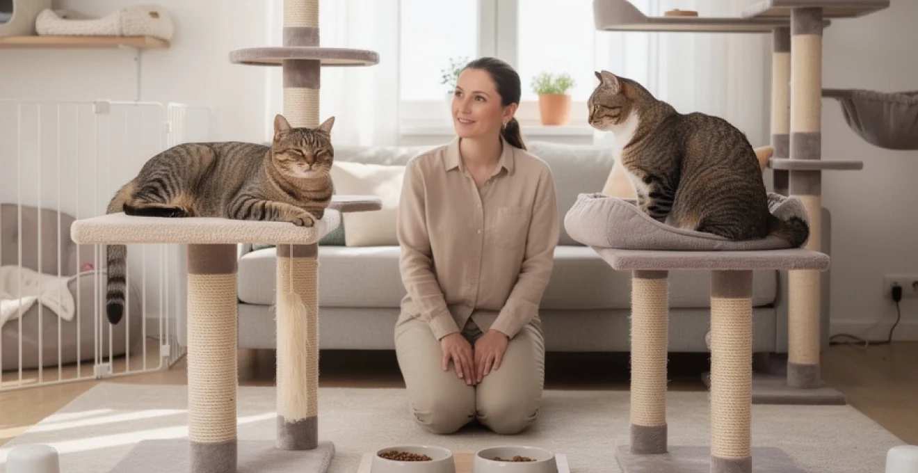 En pratique, cela signifie introduire des activités de chasse simulée, des jeux interactifs, des cachettes alimentaires (distributeurs ludiques, tapis de fouille) et des routines de jeu régulières. On peut comparer cela à un programme sportif sur mesure : un chat suffisamment stimulé mentalement et physiquement dispose de moins d’énergie disponible pour surveiller et contrôler en permanence son congénère. Répartir ces activités sur plusieurs séances courtes par jour, plutôt qu’une seule longue, respecte mieux la nature du chat, chasseur d’opportunités multiples.